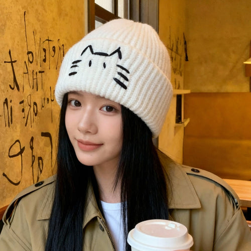 Cute Line-design Cat Knitted Hat For Womenkeeps You Warm In Fall And Winter